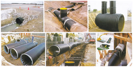 高密度聚乙烯(HDPE)增强缠绕B型管是一种环保安全型产品,具有重量轻、承压能力强、接口质量高、寿命长、耐腐蚀、环刚度高、施工方便等优点,广泛应用于城市供水、排水、远距离输水及农田水利灌溉等工程。口径从DN300~ DN4000,管材重量轻,整体柔性好,是目前埋地排污排水首选的主要管材。