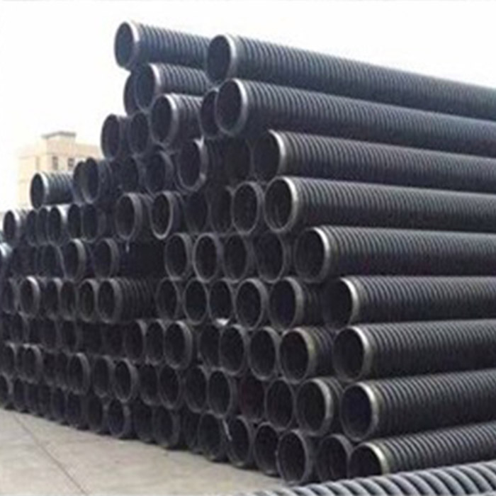 HDPE双肋增强管,产品采用的是以聚乙烯树脂为材料,以挤出缠绕成型工艺制成。结构上波内以双肋为支撑结构,很大的提高了承插压力。